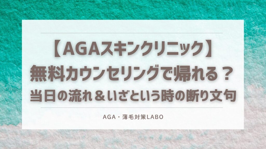 AGAスキンクリニックの無料カウンセリングだけで帰れる?所要時間・当日の流れを正直レポ!
